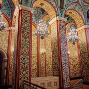 从红场北边的拱门穿入,你一定不会错过这座深红色的恢宏建筑,这就是建于1873年的俄罗斯国家历史博物馆。博物馆在红场与圣瓦西里主教座堂遥相呼应,其优雅的红砖建筑上高耸着银白色的尖顶,在沉稳内敛的气质中凸显着俄罗斯的建筑风格。这里是莫斯科大学的旧址,也是莫斯科古老的博物馆,其历史可以追溯到19世纪末期,每个展厅都采用不同时代或不同地区的装饰风格,其中一些墙壁的装饰画上还细致地表现着东正教的发展历史,相当耐人寻味。博物馆按年代分为48个展厅,馆藏涵盖了从旧石器时代至今的整个俄罗斯的珍品,共计超过420万件,其中远古时代的巨大象牙、尼安德塔人与北京猿人的复制头骨、古代人类遗址模型以及轰动世界的15件"比萨拉比亚之宝"都是值得一睹为快的收藏品。