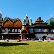 十四世纪,卡洛明斯科娅庄园开始成为沙皇的避暑山庄,1532年,修建了这座教堂庄园。同年修建的大教堂是这座教堂庄园里的古老的建筑,是石制塔形、锥顶建筑。卡洛明斯科娅庄园的“黄金时代”是在17世纪中叶,这里修建起美丽绝伦的建筑物——木結构宮殿,该宮殿拥有270个房间,3000扇窗戶,是沙皇的郊外避暑官邸,被喻为“世界第八大奇迹”。这也是这座庄园被称为“天下第八奇观”的由来。