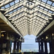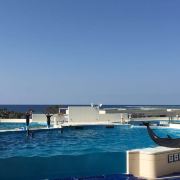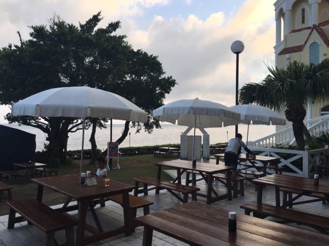 海洋博公园的自助餐厅,临窗的位置可以看海豚表演。