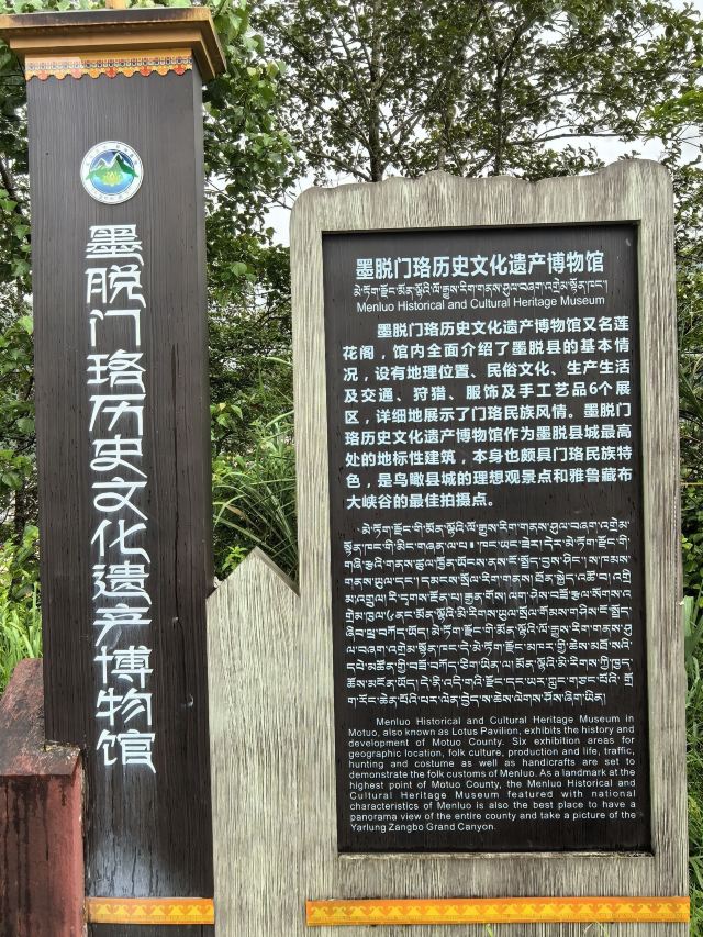 墨脱门珞历史文化遗产博物馆,亦称“莲花阁”,位于西藏林芝市墨脱县城西侧的山坡上,是墨脱县的地标性建筑。该馆全面展示了门巴族和珞巴族的历史文化,设有地理位置、民俗文化、生产生活、交通、狩猎、服饰和手工艺品六个展区,详细介绍了门珞民族的风情。博物馆建筑融合了门珞民族特色,馆内收藏了丰富的民族文物和非物质文化遗产,如藤竹编织技艺和传统铝瓢“玖”的制作工艺,展现了门珞民族的生活智慧和艺术创造力。作为墨脱县城的较高建筑,莲花阁不仅是了解门珞文化的窗口,还是俯瞰墨脱县城和雅鲁藏布大峡谷的理想观景点。清晨站在阁上,时常可见云雾缭绕,仿佛置身仙境。墨脱门珞历史文化遗产博物馆是探索墨脱多元文化和自然风光的不错起点。