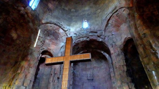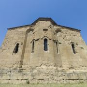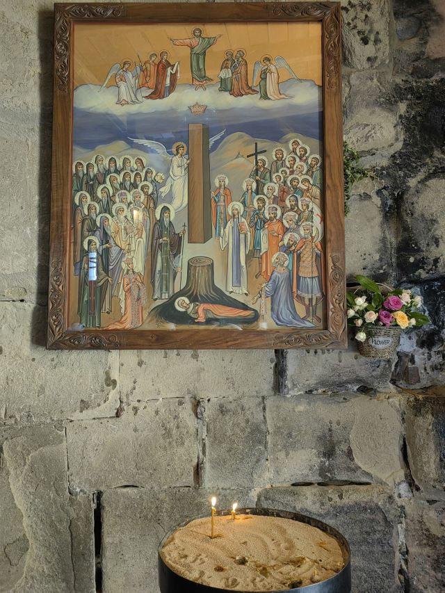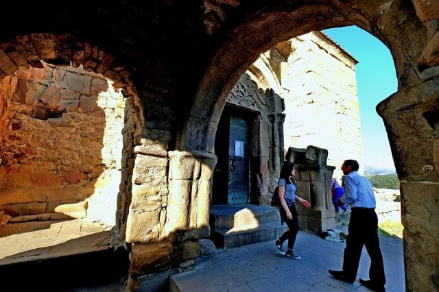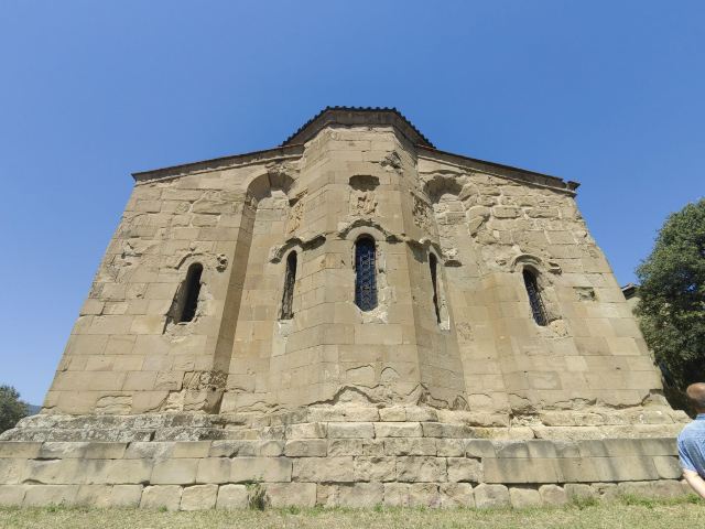 5分 超棒季瓦里教堂,建于姆茨赫塔附近山顶上,可以居高临下俯瞰姆茨赫塔古城全景。修道院如同一块突兀的巨石,不偏不倚的矗立在两河流的交汇处。季瓦里修道院建于公元600年左右。同其他中世纪的教堂一样,设计考究,建筑风格明了,世界文化遗产,是姆茨赫塔古城的又一处璀璨瑰宝。季瓦里修道院内十分古朴,与许多大教堂的精致华丽完全不是一个风格。进入之后第一眼看到的就是一个巨大的,朴素至极的木质十字架,墙体还留着石头建材天然的凹凸不平的表面。室内光线昏暗,主要是靠窄小的窗户采自然光,相机感光度狂飙,高噪点密度感人。修道院里几乎没有任何装饰,完全没有欧洲修道院的华丽,游客众多,一个神父静静地坐在那里,对周围视而不见,远离滚滚红尘,与冰冷的石头建筑为伴,为心中的上帝而孤独地坚守,这就是信仰的力量。其实,在格鲁吉亚的每一处宗教场所,都能感受到人们无比的虔诚,教堂里的信徒似乎永远比参观者要多!安静到只有听到信徒们的窃窃私语,空气中有着淡淡的蜡烛香味。光,影,声,香,都极其和谐的营造着这里虔诚的信仰氛围。一千多年的修道院,要躲避战火保留至今实属不易。此刻,凭栏迎风,无欲无求。