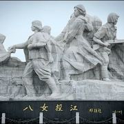 八女投江群雕位于牡丹江的江滨公园内,是一组纪念1938年东北抗联妇女团而特意修建的美丽雕塑。在抗战时期,抗联妇女团的8位女兵为了掩护部队转移而不依不饶抗击日本伪军的逼近。