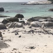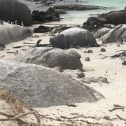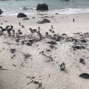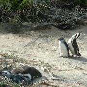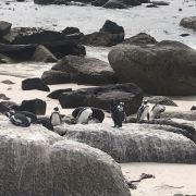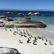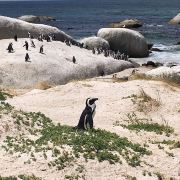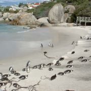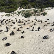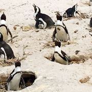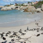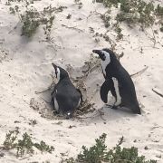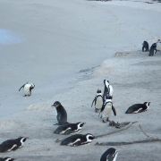 起初这里只有两对企鹅,后来在当地居民的保护下,数量日益增多。这里吸引大家眼球的是南非的品种——斑点企鹅,它们在企鹅种类中个头较小,胸前有黑环及黑色小斑点,粉红色眼圈,很是可爱。