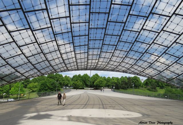 整个公园由33个体育场馆组成,包括可容纳80000名观众的奥林匹克中心体育场、可容纳9000名观众的游泳池、14000座席的综合体育馆等奥林匹克中心体育场半边有顶,有一个靠50根吊柱吊起的几张“鱼网”组成的帐篷式屋顶。吊柱有的高达80多米。这帐篷屋顶部遮住半个体育场,它的面积广达7.5万平方米,是世界上较大的屋顶,相当于10个足球场那样大。