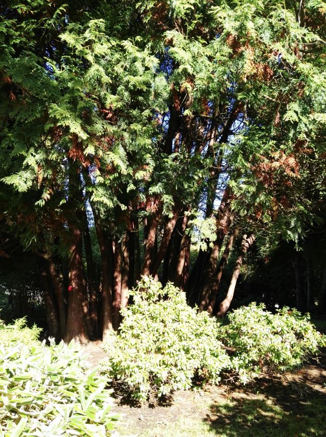 绿葱葱的参天树木,花园,湖水,山脉浑然一体,美不胜收。