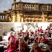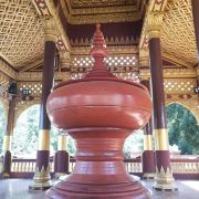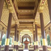 塔内还有双层回廊,并有双层窗户以采光。回廊的墙壁上有上千处佛龛,供着大小不一的金像,值得细细观赏。佛塔之外是一个开阔的内院,你可以在这里近距离欣赏佛塔金碧辉煌的尖顶。