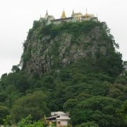 波巴山,是缅甸中部有名的死火山,缅甸语意为“花朵之山”。波巴一词在梵文中是指“花朵”之意,这座孤寂的山峰是由地底喷出的火山灰堆积形成,高达1500米,在蒲甘平原上极为醒目。时至今日,波巴山仍是缅甸精神崇拜的象征。波巴山山上建有纳特神庙和佛塔,也是传说中神灵出现的地方,是信奉纳特神教的信徒心中的圣山。尤其是每年四月份欢庆众神的节日,会吸引数以千计的朝圣者,不辞辛劳的前来朝拜。