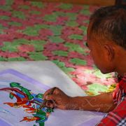 虽然古彪基寺没有宏大规模,但依然有着不少的信众和游客前来。寺内的清凉与寺外的酷热形成了鲜明的对比;树荫下的小姑娘在心无旁骛地作画;一阵风吹过,带来的不仅是清爽,更有不绝于耳的清脆风铃声,让人神清气爽……
