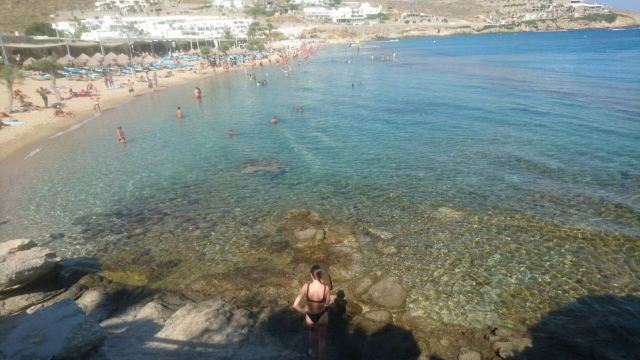 5分 超棒我们确定的第一件事就是寻找有海滩的地方,毫无疑问天堂海滩是最棒的,舒服的沙,没有碎石头,下午5点后,海滩便响起了音乐。希腊肉卷很好吃,还便宜,有点像土耳其烤肉。海滩最便宜的座位只要十镑,非常划算。