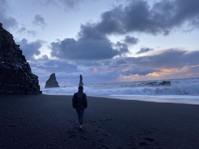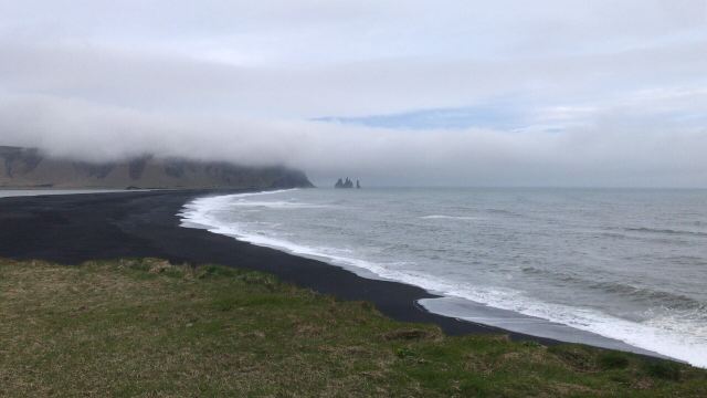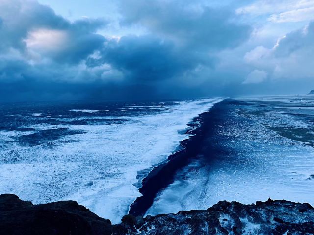 🇮🇸所以来到冰岛,必须来到这个黑沙滩一窥究竟。黑沙滩有两种游玩方式。一种就是爬到迪霍拉里海峡,从高处俯瞰黑沙滩,特别有气势磅礴的感觉。还有一种就是直接在黑沙滩的沙滩上玩耍。两种方式都必须要注意,这里的风特别大,稍不注意就会把你人都吹得站不稳。