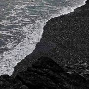 黑沙滩的“沙”其实是颗粒状的火山熔岩。这些熔岩颗粒没有杂质,也没有淤泥尘土,捧起一把,满手乌黑,轻轻一抖,黑沙四散,手上却纤毫不染,十分奇特。此外,在海滩附近还有一种奇特的熔岩山耸立于海中。