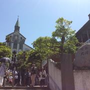 大浦天主堂,正式名称是日本二十六圣殉教者堂,是日本结束锁国的1853年后最早建造的天主教教堂之一,也是日本国宝中唯一的一个西洋风格的建筑。参观教堂可从教堂一侧的入口进入,教堂内部装饰非常的哥德式,很优雅,非常多马赛克窗花,里面的白色圆顶弧线很美。为了尊重很多教友,在教堂内参观不能拍照喧哗,而且要脱帽,可以在旁边每个走道参观,然后从另一边的出口离开。大浦天主教堂下的坡道两侧有许多各色小店,很值得一逛,能买到心仪的商品。有一家很有历史玻璃制品,可以买到各种漂亮的玻璃制品。