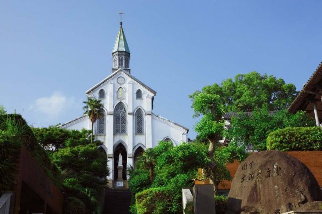 大浦天主堂创建于1865年,由巴黎外国传教会派遣的两位法国神父建造,供奉着1597年因天主教教令的颁布而殉难的26位圣者。