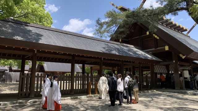 交通攻略:名古屋站出发 坐JR中央线 到热田站 出来步行十分钟就到神宫南门了