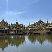 建议租辆自行车慢游。当车轮碾过不同府治的地砖纹样,当树影婆娑在假吴哥窟的伪石雕上,这个由模型组成的国度反而比真实景点更坦诚:所有历史都是当代的倒影,所有圣地皆是欲望的投影。在游客最少的西南角,仿古市集里售卖着冰镇椰青的老妪会说英文——这才是暹罗古城最真实的隐喻。