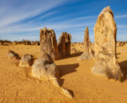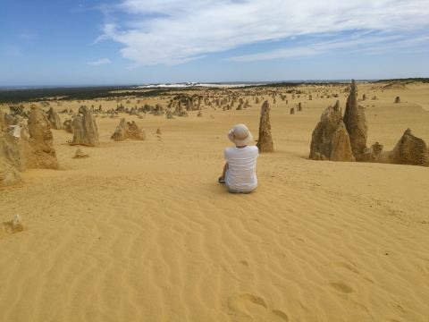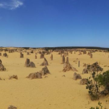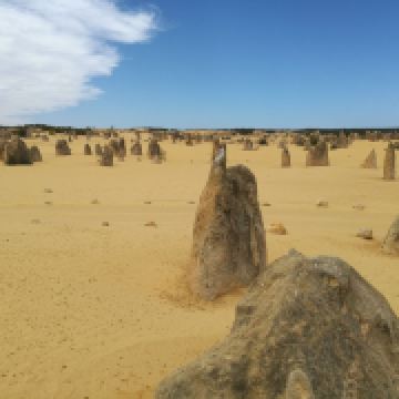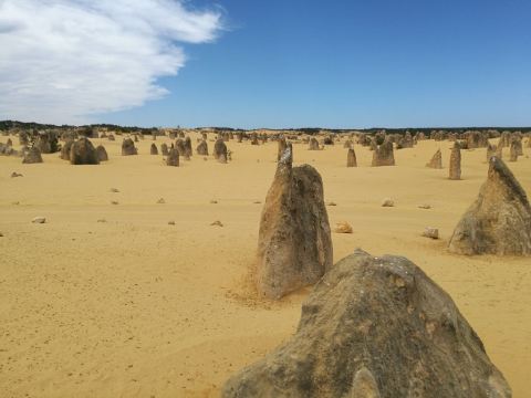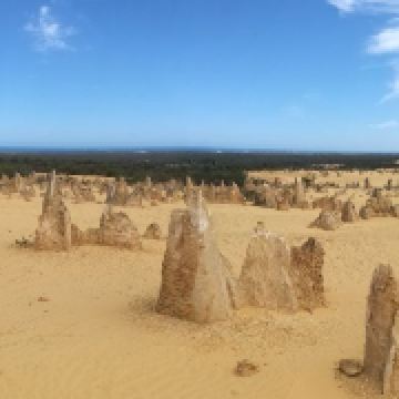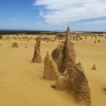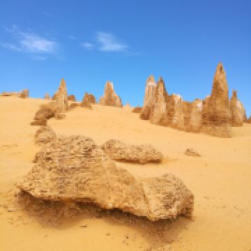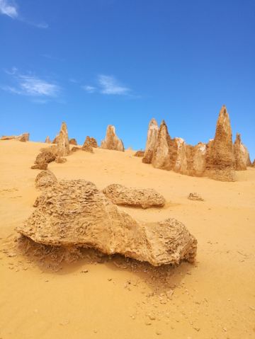 5分 超棒尖峰石阵(Pinnacles),是在平坦的沙丘中,四处都矗立着石灰岩尖塔式的石笋,很象古代的排兵布阵,因此得名。它是西澳最著名的旅游景点之一。
