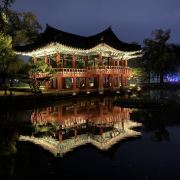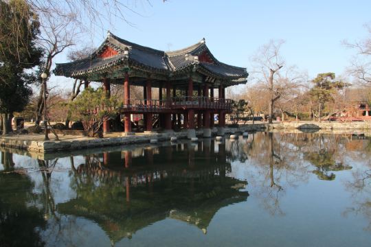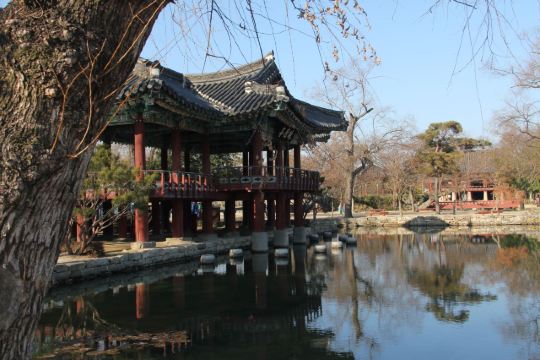 1419年朝鲜世宗时期的丞相黄喜流放到南原时,建起一座楼阁取名“广通楼”。此后1444年,河东府院君郑麟趾为此地美景所吸引,借嫦娥所在的“广楼清虚府”之名称其为广寒楼,意指美景堪比月亮宫殿。广寒楼苑以广寒楼为中心,由瀛州、蓬莱、方丈三座浮于水面的小岛和象征着牛郎织女相会的乌鹊桥等组成。