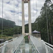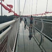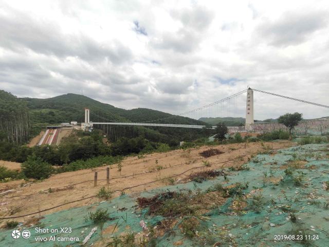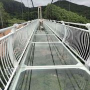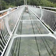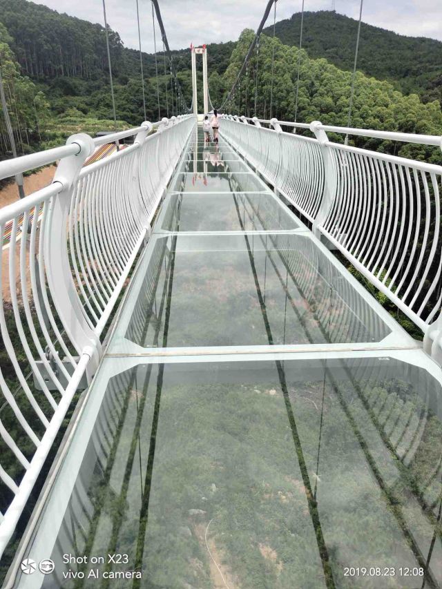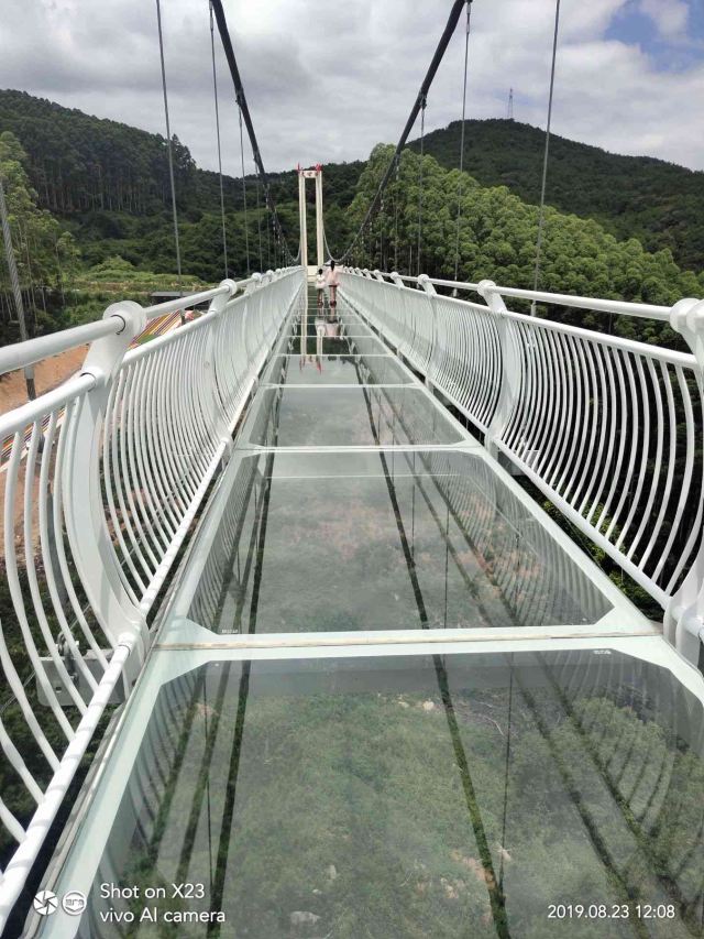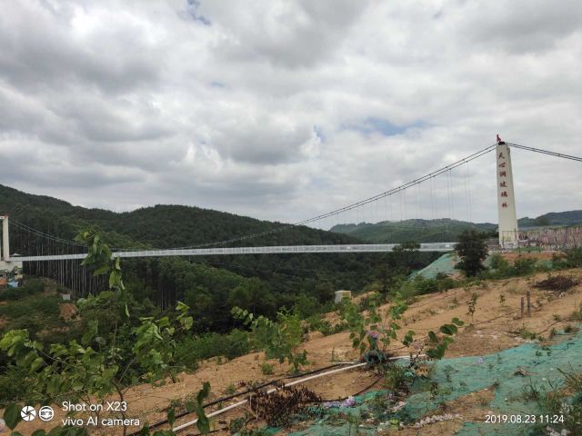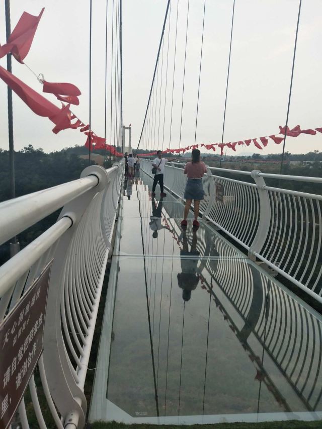 天心洞玻璃桥长220米,坐落在群山环绕之间,站在桥上,大自然的气息扑面而来,微风徐徐、雄鹰助阵,目光所及之处均是绿水青山,好风光尽收眼底。
