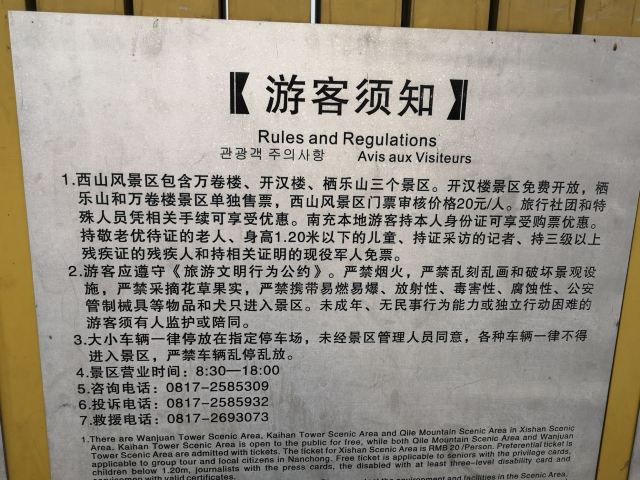 1.位置:南充顺庆区西郊,西山就是嘉陵江以西,分为三个部分,万卷楼景区=玉屏公园,开汉楼景区,栖乐寺景区,我这只说万卷楼;