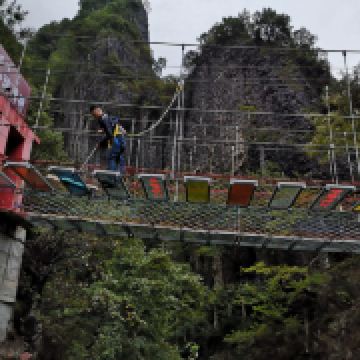 第二部分是山上,可以坐电梯上去,走玻璃桥,再坐滑梯下来。这些项目都是收钱的,而且太刺激,不适合我这种油腻大叔。
