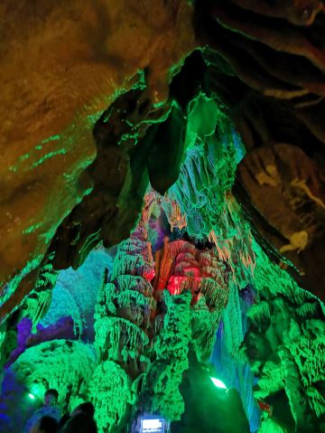 景区内有多个天然溶洞(如“穿花洞”“逍遥洞”),钟乳石、石笋等喀斯特地貌发育丰富,配合灯光效果更显奇幻。
