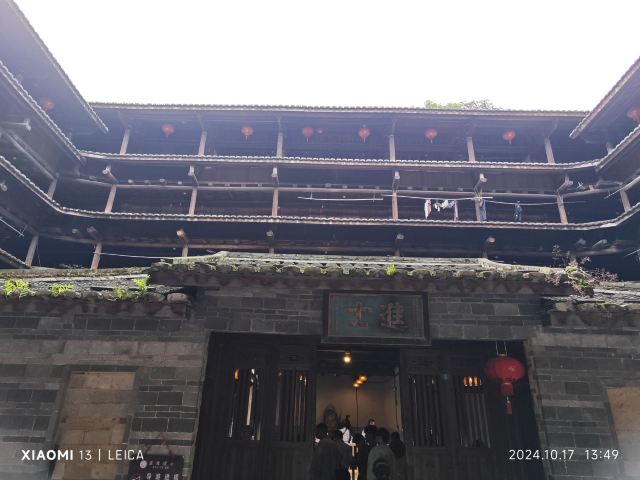 整个景区壮观的应该是5层楼高的和贵楼,它是较大的方形土楼,令人诧异的是它是建在沼泽地之上的。中庭有一块下陷的鹅卵石地面,长期潮湿,人站在上面踩一踩就能感觉到地面的上下摇动。需要注意的是,如果你想要上楼,需要另外支付5元,并且这里的商业气息很浓重,各种小摊挤的满满当当。