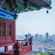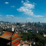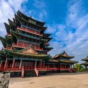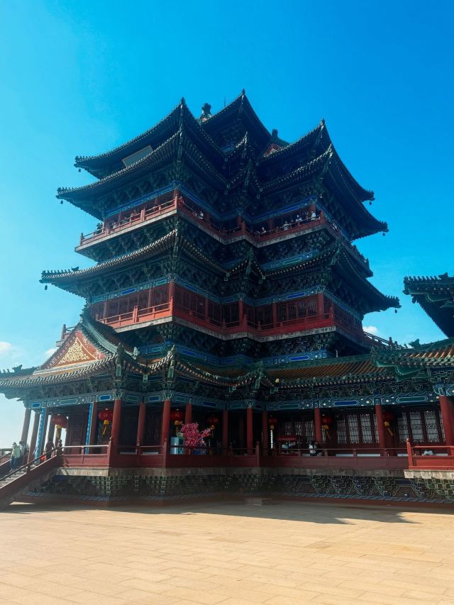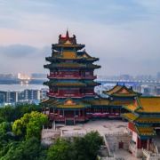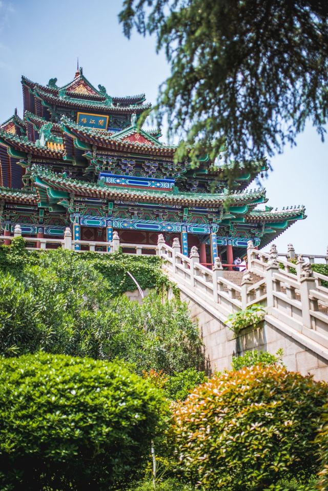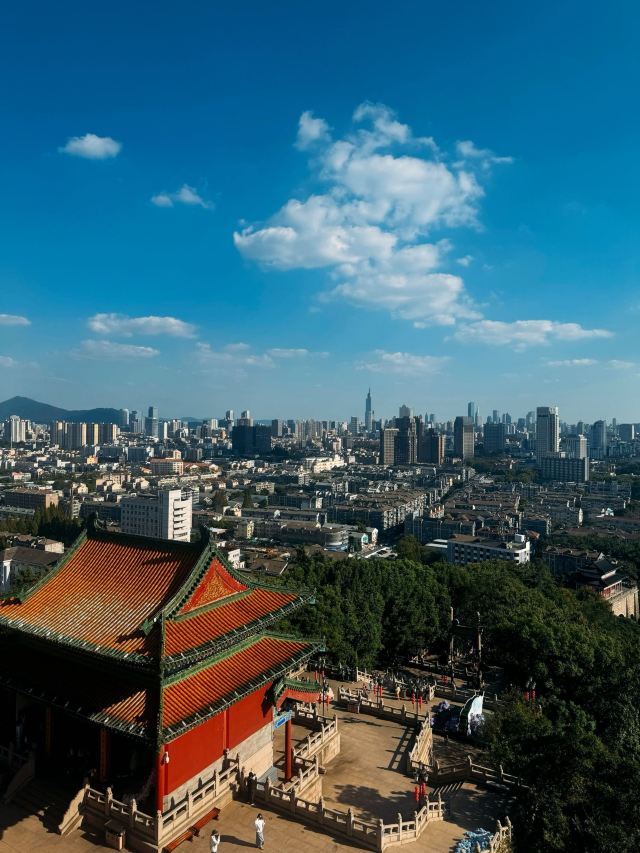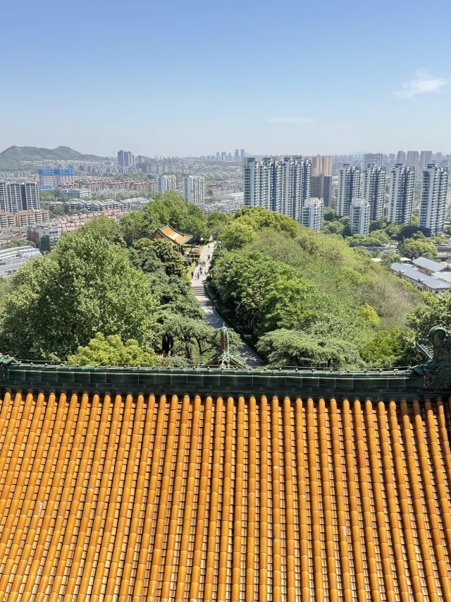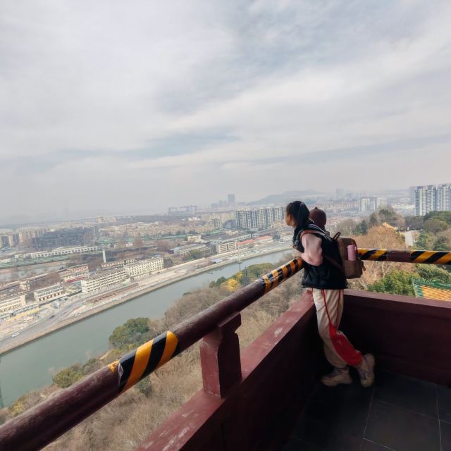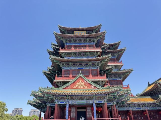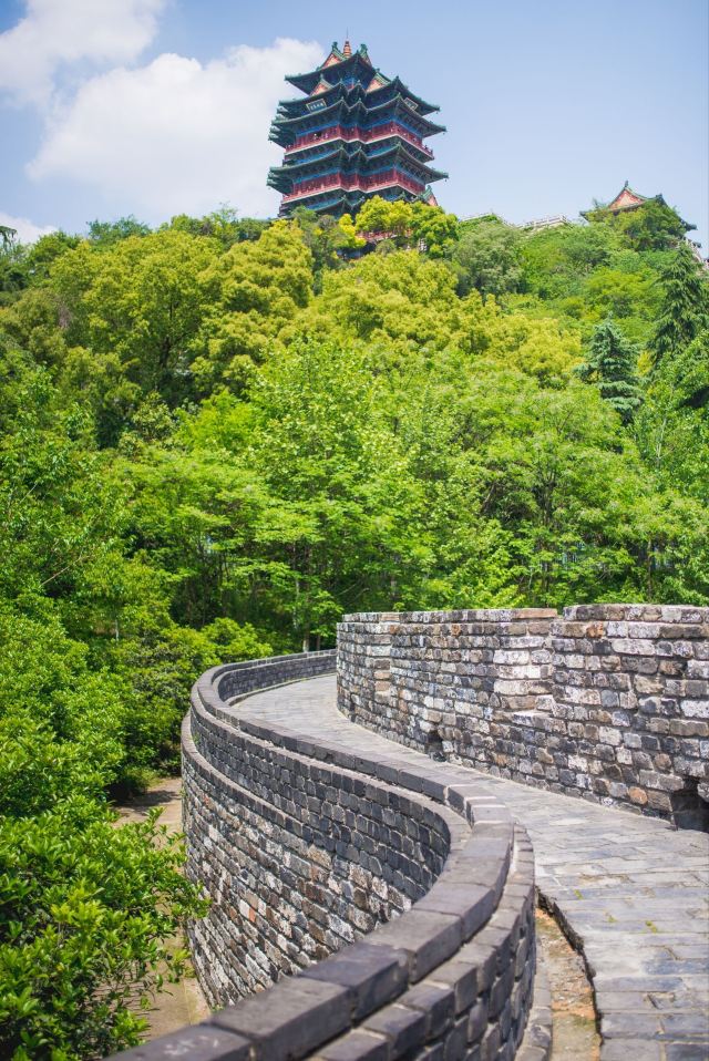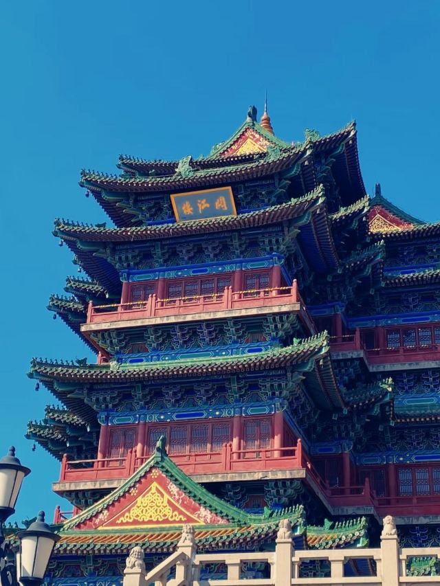 微信小程序南京阅江楼位于长江南岸的狮子山巅,护城河环绕着狮子山。阅江楼仿明代建筑,红色的柱子,金色琉璃瓦覆顶,鲜艳夺目。登上阅江楼远眺,浩瀚的长江风光一览无余,令人心旷神怡。