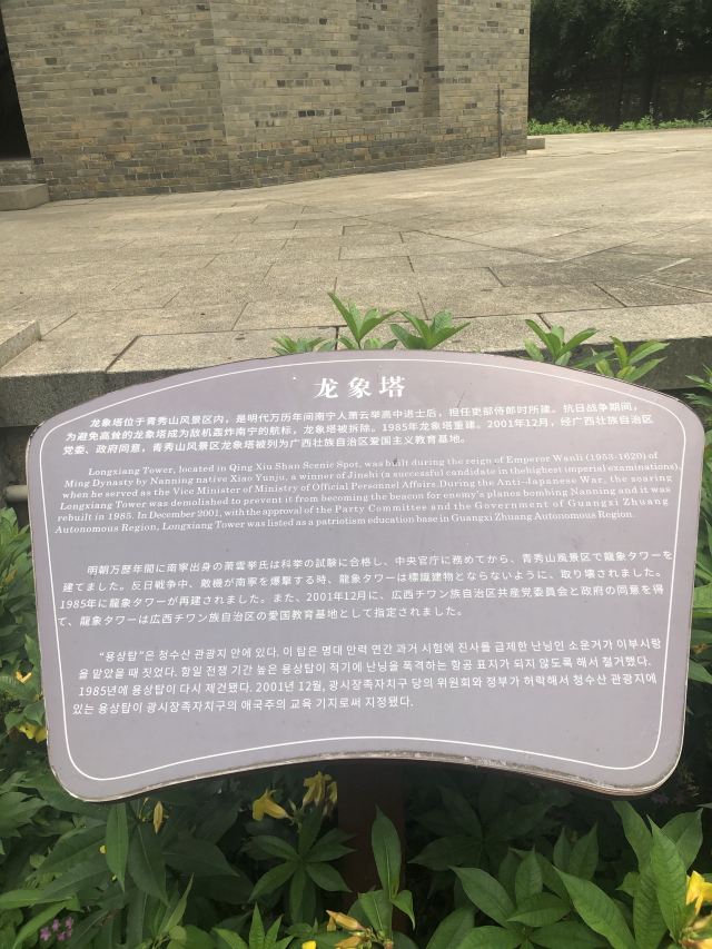 1、“龙象塔”位于5A景区“青秀山”内。青秀山是南宁市必打卡的山水名胜,位于邕江江畔,花卉纷呈、山峦青翠,云集各类风格景观,集赏花观景、异域风光、休闲娱乐、健身养生、科研科普于一体,历史上留有徐霞客、等名人和国内外政要商贾的足迹。景区分东园和西园两大区域,西园面积更大,包括“东盟友谊园”、“兰园”、“观音禅寺”、“天池”4大区域。