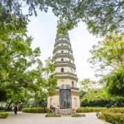 龙象塔坐落于青秀山南部山巅,是一座始建于明代万历年间的古塔。龙象塔虽于抗日战争期间被拆除,但后来按原样重建,恢复了往昔的风采,重新成为了青秀山的地标建筑,游人登上此塔更可远眺山水风光,令人陶醉。