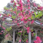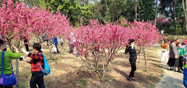 4分 满意桃花是初春时节在很多地方都能够看到的红色的花,桃花开了就意味着春天到了。经过一个冬天的修养生息,随着桃花的开放,人们纷纷走出家门去不同的桃花园赏桃花,感受春天的美丽。在南宁也有这么一处赏桃花的地方,那就是青秀山青秀山核心景区东北部的桃花岛。之所以这里不叫桃花园,是因为这里三面为谷,中间为岛,常年云雾缭绕,宛如一个仙岛。桃花岛面积很大,大约有200亩,种植有毛桃、绯桃、香味桃、人面桃、日月桃、粉玉桃等几十个品种3万多株桃树。每到2、3月南宁的春天来到时,这里不同品种的桃花陆续开放,色彩缤纷,会吸引大量游客到此踏青、赏花,当然也不乏青年男女在这里祈福,希望得到桃花运。我们是五一假期去的清秀山风景区,到桃花岛时桃花已经基本上没有了,但能够看到树上挂着的还没有成熟的桃子。尽管假日里清秀山风景区到处都是人,但这里却游人稀少,显然桃花岛现在是一个季节性景点,不知风景区管理者能不能想办法让这个景点在春天之外的活力得到开发,如增加各种观赏性的鲜花栽培等,以不辜负这么一大片仙境。