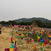 2、桃花岛占地200亩,种有几十种3万多株桃树,目前不在花季只有一片绿叶,树上系满祈福带。