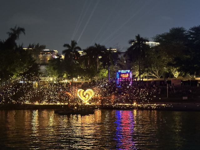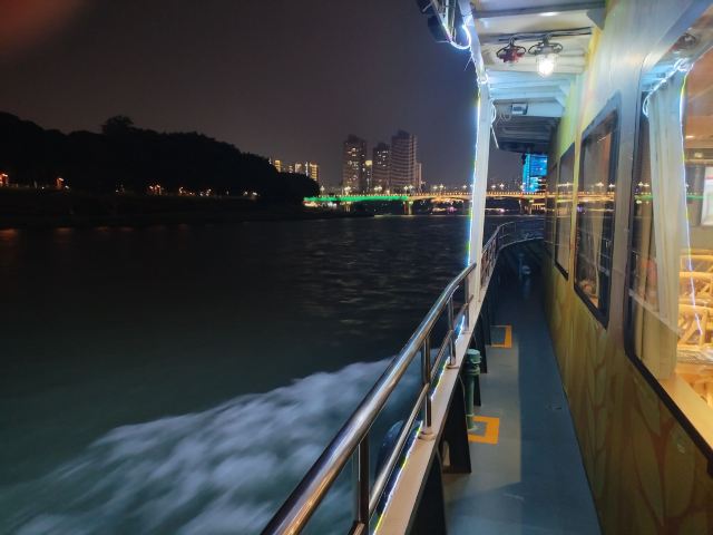 1分 不佳两个人两张票236元,岸边都不舍得开个灯,二楼是几个包厢,三楼地方又挤又窄,唯一惊喜的是打火花秀,那是那是岸边的表演,所以很差的一个游船项目,建议避坑!看打火花很多人集中在船的一侧,安全隐患!