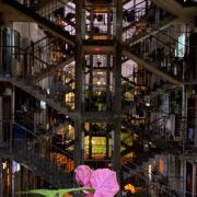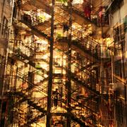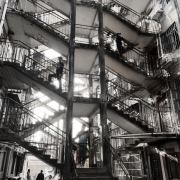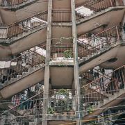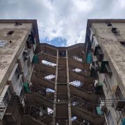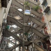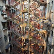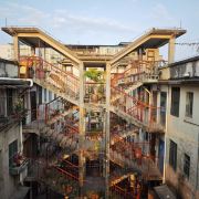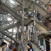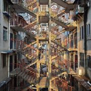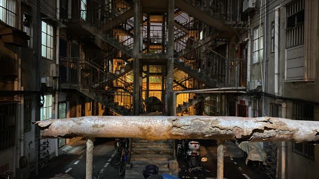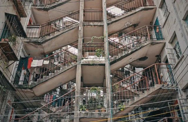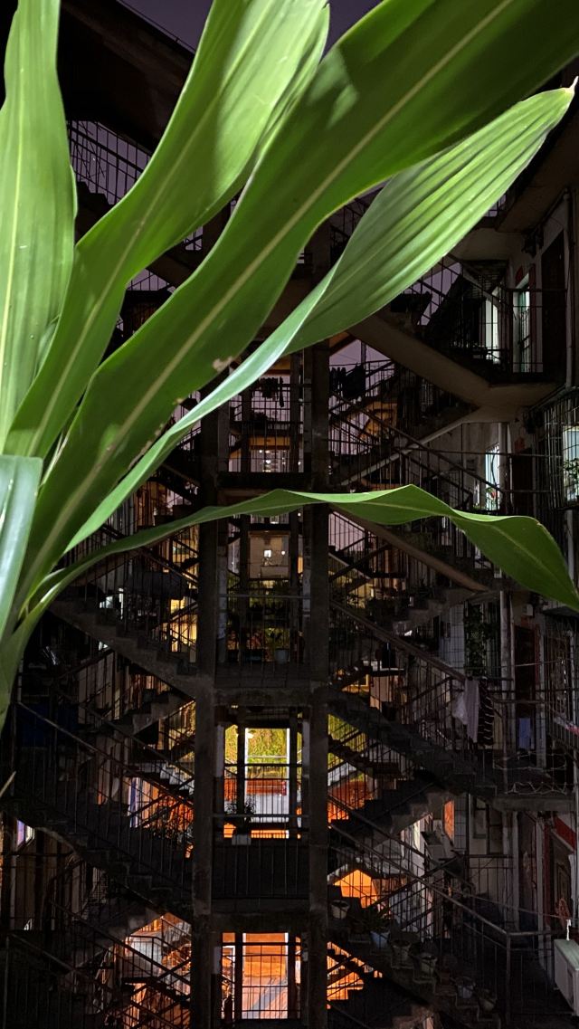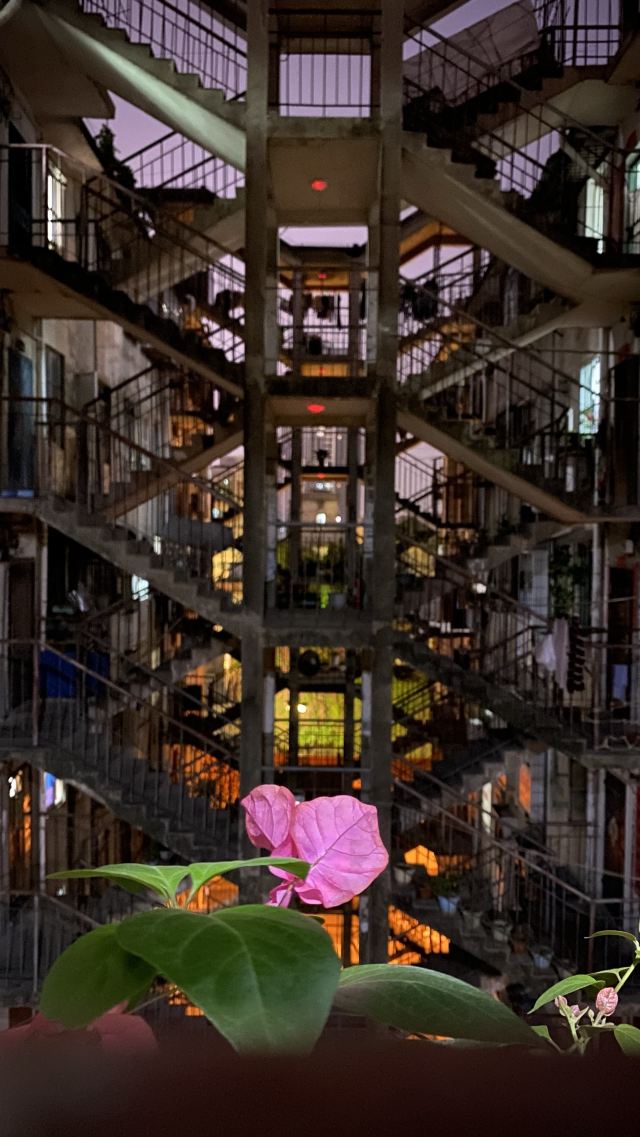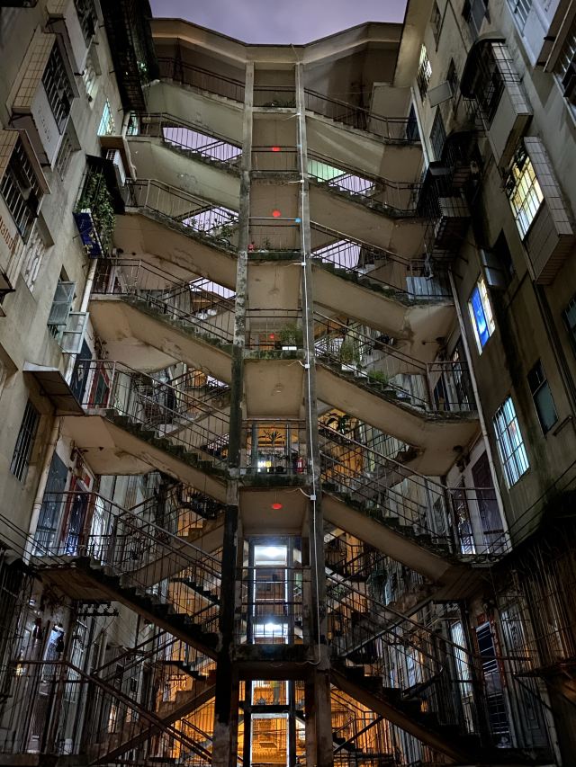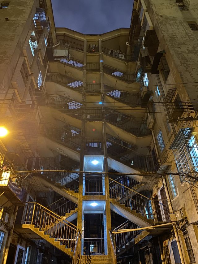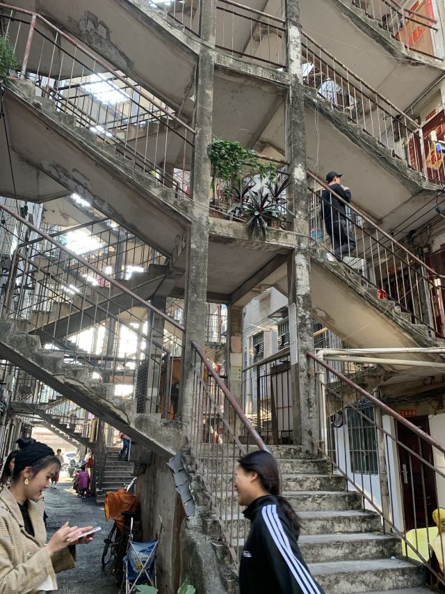 南宁的唐山街28号鸳鸯楼,楼梯纵横交错,四通八达,将两栋楼连接了起来。连通建筑,也联络了感情。楼建于1987年,已有30年的历史,外表有点老旧,不过环境干净整洁,地上极少看见垃圾,一梯两户,大门相对,视野开阔,4栋楼,168户人家,紧紧连接在一起,居户以老年人为主,生活气息厚重,别具一格的城市印记,其中点缀的绿色植物又显得勃勃生机。现成为网红打卡点。