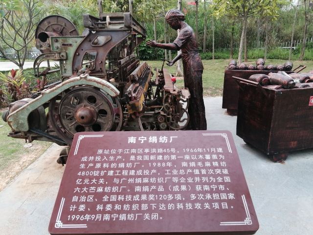 4分 满意在南宁江南公园看到南宁绢纺厂的雕塑,再看介绍,觉得可惜了,1988年过亿的产值,曾经有过辉煌,没想到,8年后就倒闭了。