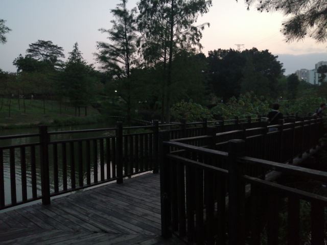 4分 满意傍晚时,走在南宁江南公园的湖边,九曲桥上,很凉爽很舒服。