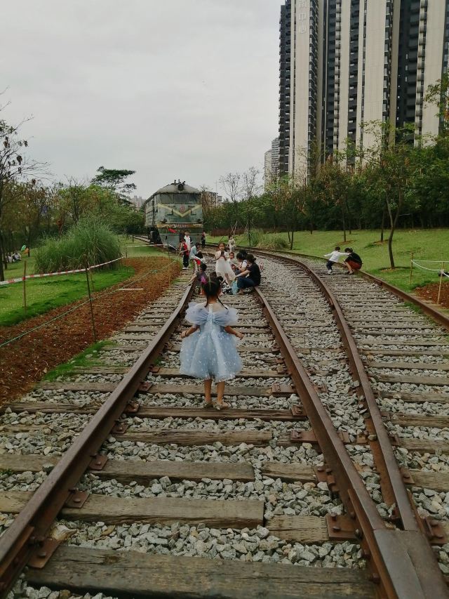 5分 超棒保留了铁轨和火车头,江南公园凸显工业风。
