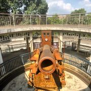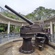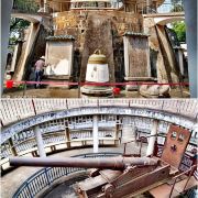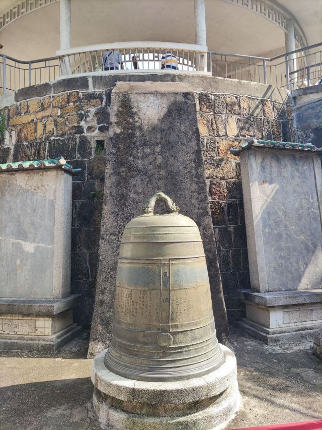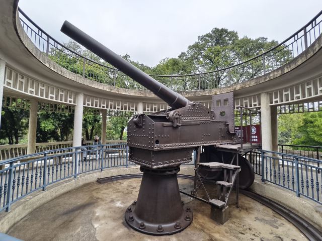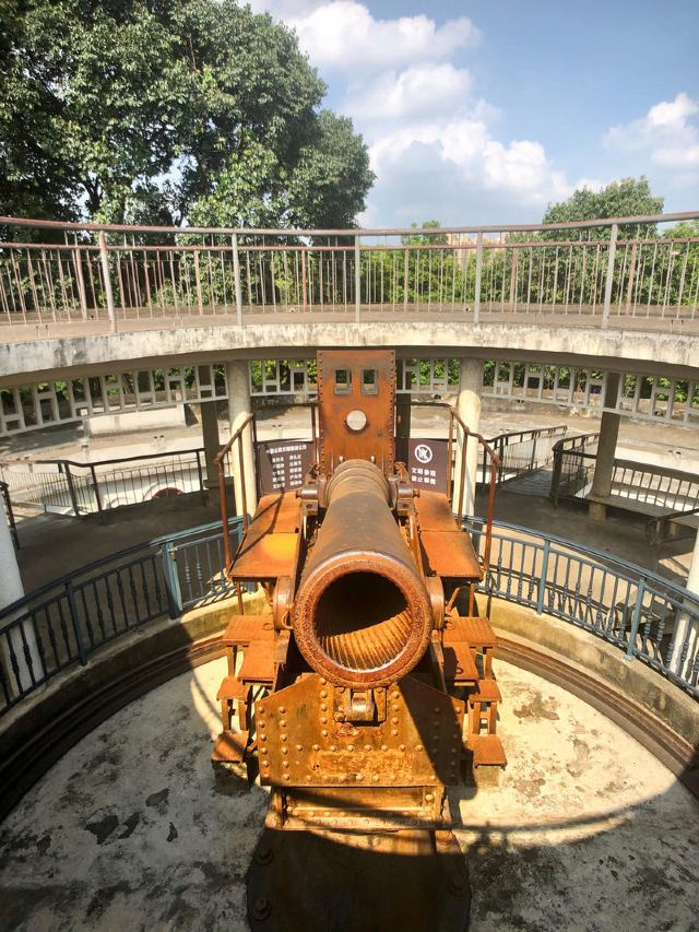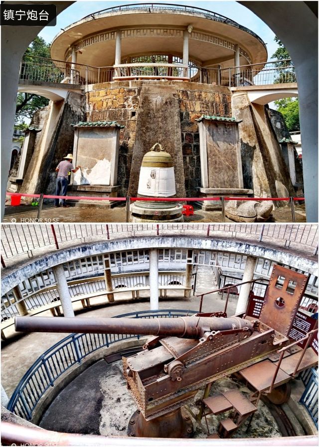 ①镇宁炮台:始建于民国六年(1907年),由旧桂系军阀、时任两广巡阅使的陆荣廷命令陆军少将廖正元修建,正中高台上立有从德国克虏伯工厂进口的加农炮,但大炮四周的环形亭子是建国后所建。炮台自建成后一炮未发,果真起到“镇宁”作用。炮台下是历代相关碑文和“平安大钟”(铸于明嘉靖十年,即1531年,重1000多公斤,悬挂于钟鼓楼“平楚楼”上,每早每晚各敲108声,是古代南宁“晨钟暮鼓”的由来),当天正值工作人员拓碑,观摩了一下蛮长见识。最外围一圈为营房和碉堡,营房分18间,其中13间作为展览馆展示了南宁市近代的军事风云和历史进程,以及小孩感兴趣的2间哈哈镜房间。