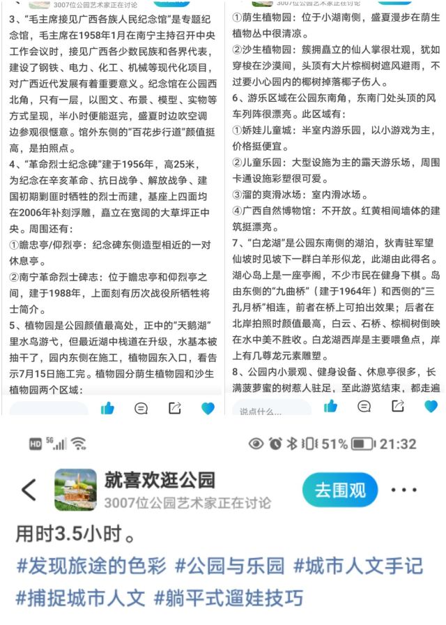 - 相亲角:每周六、日9:00-14:00开放,是南宁比较大型的相亲信息展示基地,为单身男女提供了一个交流相亲的平台,让情愫在高山榕下悄然绽放。