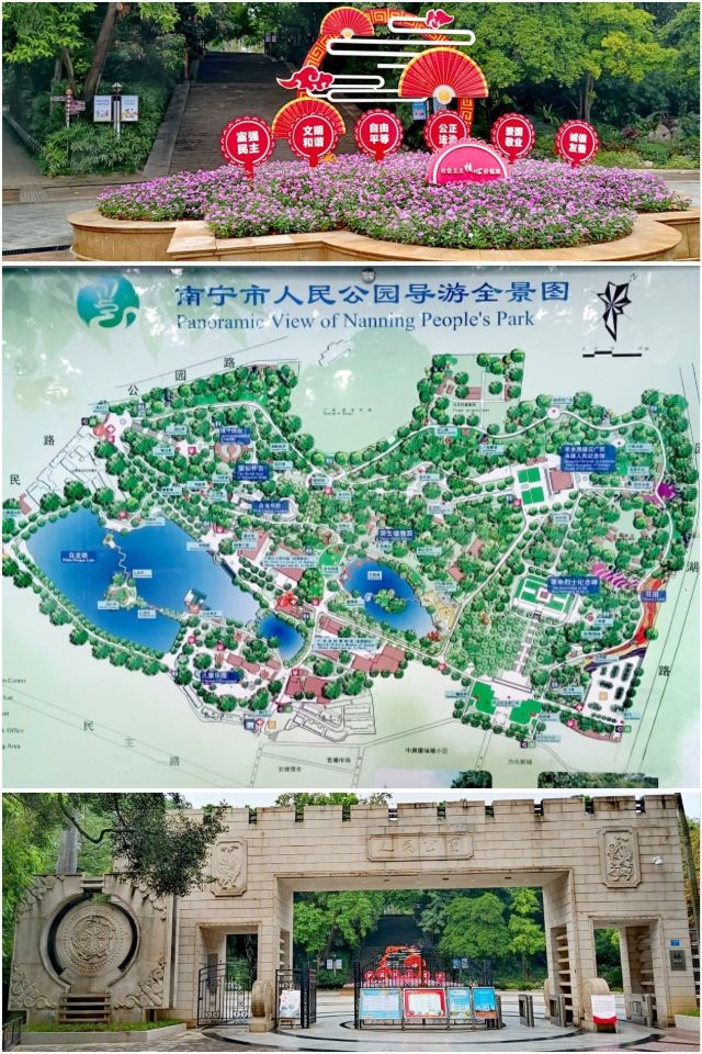 1、“南宁人民公园”是南宁市区内最大的便民公园,面积达50多万平方米,既有秀丽的湖光山色,又有花红柳绿的观赏植物,集历史人文、健身养生、休闲遛娃于一体。入园免费