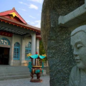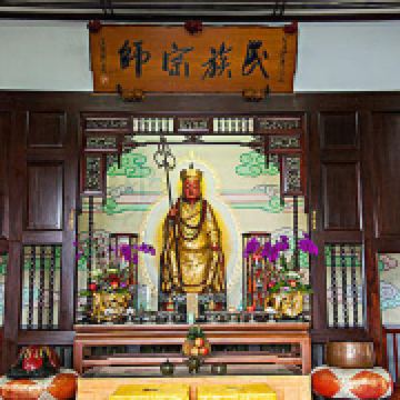 该寺地处日潭与月潭的陆地交界处,外观为仿唐式建筑,内供奉玄奘大师的金身,上悬“民族家师”匾额,临潭背山,离潭仅十余公尺,寺下设有码头,游客可搭船至码头,再拾级而上参观。