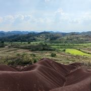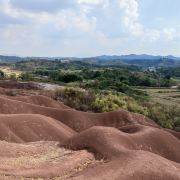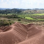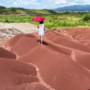 5分 超棒韶关南岭红沙漠景区主要是红色盆地,色为紫红,多为裸露丘陵地带,形似沙漠,当地俗称“黄沙坷”,学术名为“南雄红土层”,具有休闲观光、徒步露营、影视摄影和科考探秘等几大特色------大地朱砂,景色奇异,粤北风情,自然奇观!