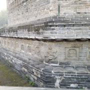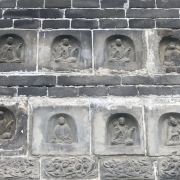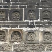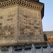 5分 超棒位于邓州市区,周边居民已拆迁,整理出几十亩大小空地,塔旁有文物队用洛阳铲勘探地下,听说政府已经规划建设新寺庙。福胜寺塔典型宋塔风格,共七层,一层甚是粗大,环绕周长是见过最长的,向上逐层收窄。周身镶嵌砖雕,内容丰富,有佛像、伎乐、忍冬纹等砖雕二千多块。一层有门,据说有磴道可上至四层,现在封闭不能进入。据说初建有13层,元末兵灾顶端六层被毁,剩余现在的七层。不过从外边看不出来,觉得七层挺正常。后来发现塔下有地宫,出土金棺银椁,内藏佛顶骨和佛牙舍利,现保存在省博物院。并有确切记录塔建于1032年,距今已有988年,既有舍利,当初必为十三层。