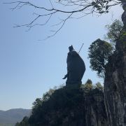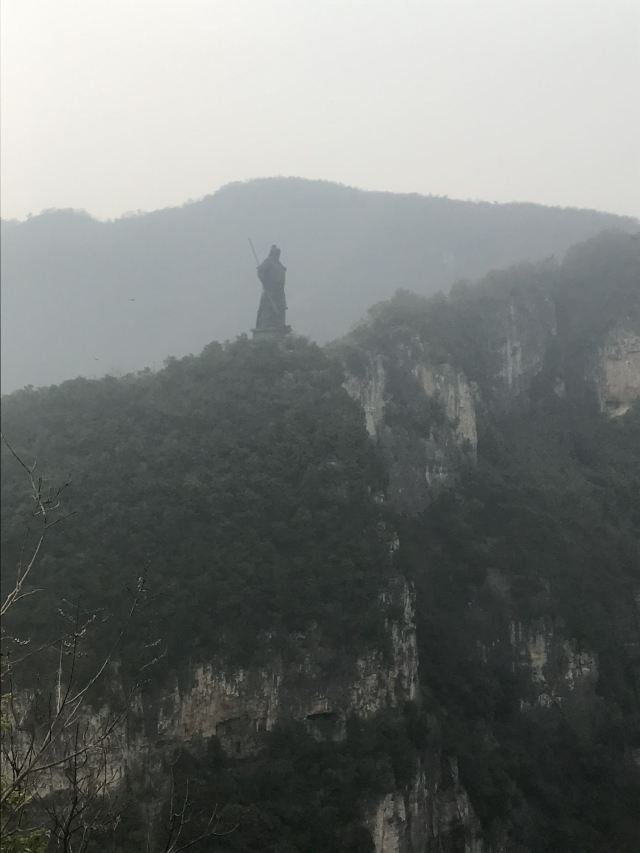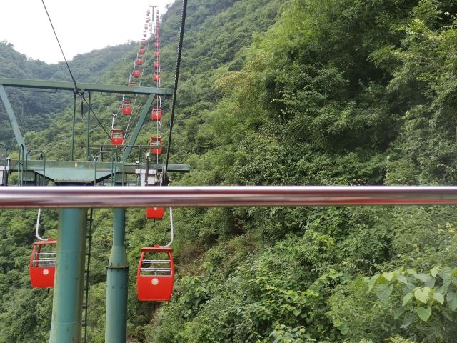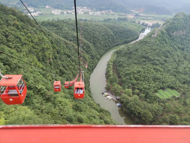 请了导游小姐姐,跟着导游先去坐了索道,这索道很长,坐了大概十五分钟左右,小姐姐说俯瞰下面的河和山,像一个山水八卦图,很神奇,感慨大自然的鬼斧神工。