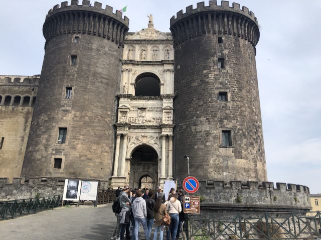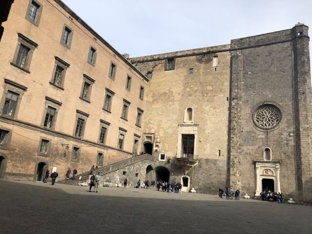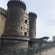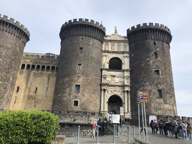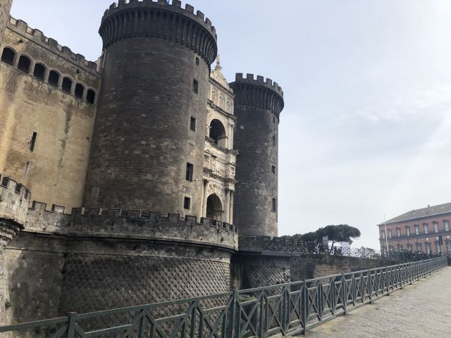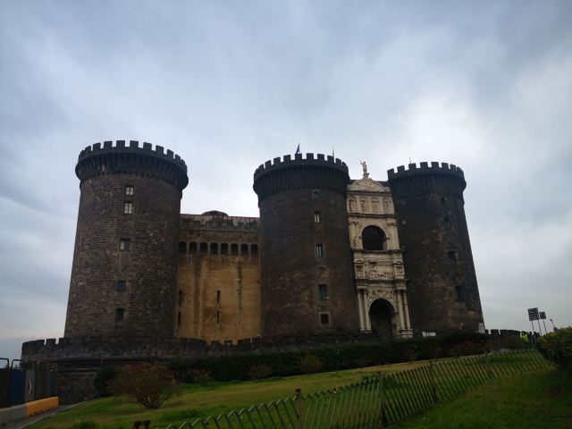 新堡,又名安茹城堡,由那不勒斯王国第一位国王下令建立。城墙上四座圆筒形高塔和四周的护城河,是典型法式城堡的风格。现时城堡内设有小型博物馆,收藏描绘那不勒斯历史的油画。
