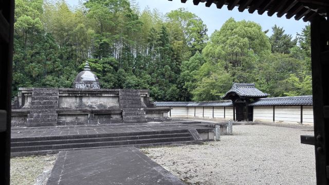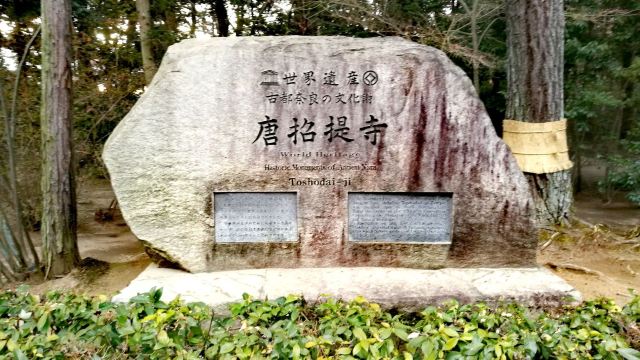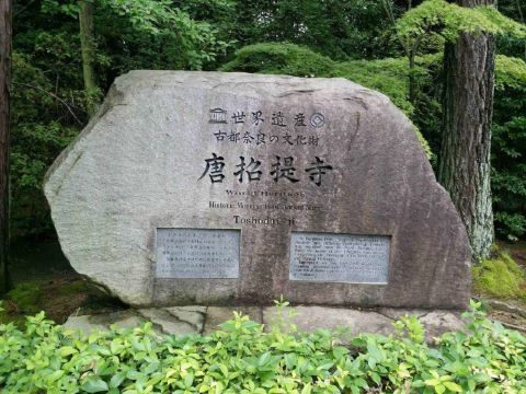 鉴真圆寂之后就葬于此,寺内有鉴真墓,不少中日两国的虔诚佛教徒都会来此拜谒。墓前种有移植自鉴真大师故乡扬州的琼花树,每年五、六月琼花盛开,以慰思乡之情。另有安置大师尊像的御影堂,保存有珍贵的鉴真的木刻雕像,双目紧闭,神态端庄,眉宇间流露着坚定不移的气质。每年只有在鉴真的忌日(6月6日)的时候,才对外展示。