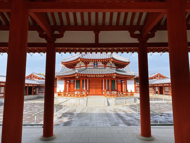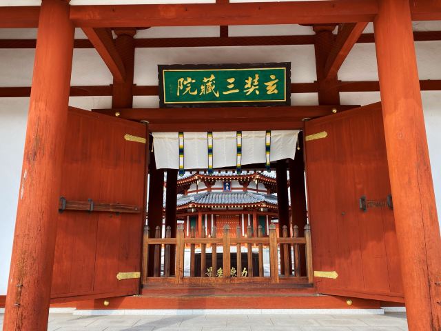 1991年,作为新殿堂的玄奘三藏院伽蓝建造完成(图8⃣️、图9⃣️)。作为称颂因小说《西游记》而广为人知的唐代高僧玄奘三藏遗德的中国式伽蓝,平山郁夫画伯创作了 "大唐西域壁画"(定期限时公开)。