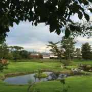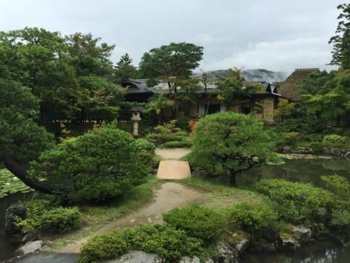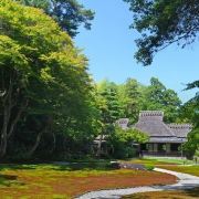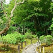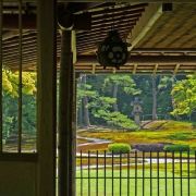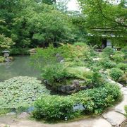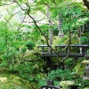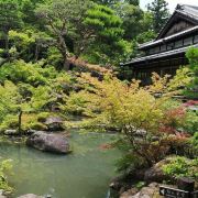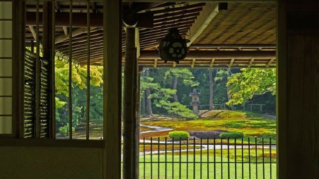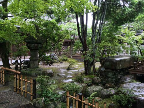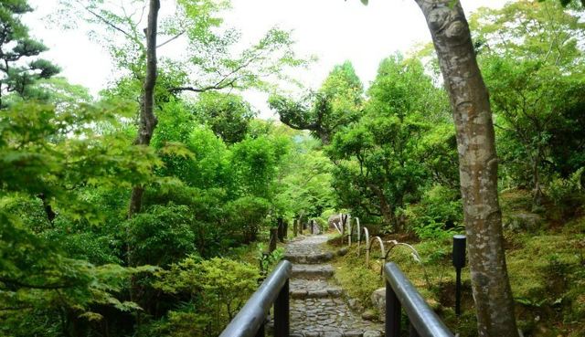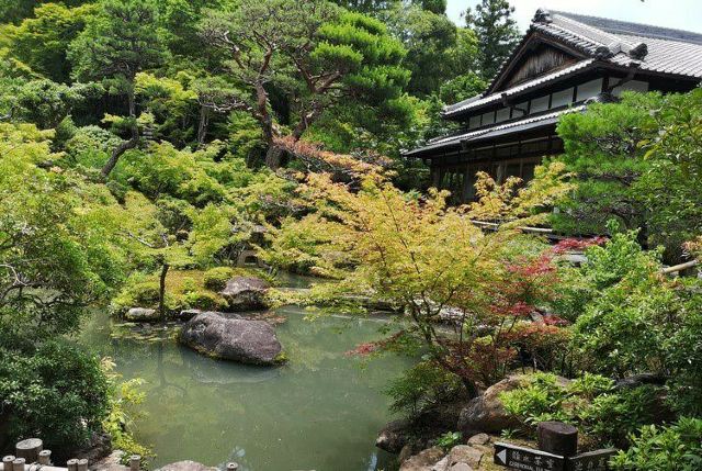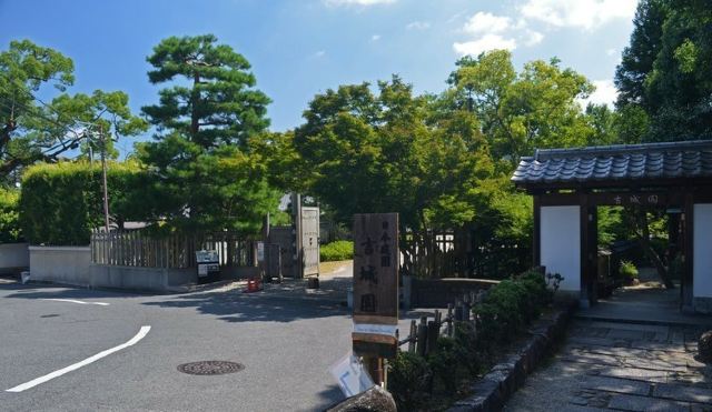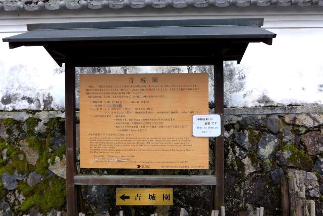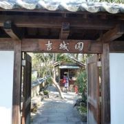 吉城园邻接着名胜依水园及吉城川旁,是日本和风式庭院。有池之庭、苔之庭、茶花之庭三个部分,苔之庭里有一座茶室,各个庭院中的青苔是一大特色。根据“兴福寺古绘图”上的记载,此地早为兴福寺的子院摩尼珠院,是兴福寺高僧的住所。园内分设有池塘的院子、青苔的院子和茶花的院子。池塘的院子巧妙地利用了江户时代开始形成的地形的起伏和曲线的变化,使其与建筑物融为一体。