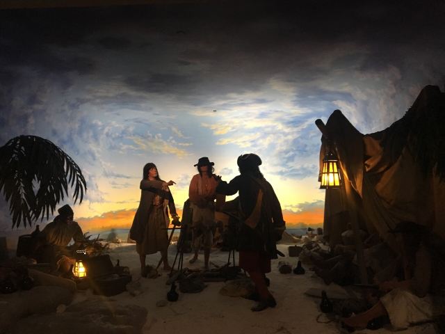 海盗博物馆里面讲述的是真正的加勒比海盗的故事,里面不光摆放着加勒比海盗攻占巴哈马群岛时用到的武器和船只,就连博物馆本身都是主题化的,从一个房间到另一个房间都是按照故事情节采用了不同的灯光效果。