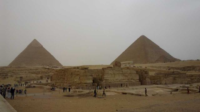 参观完狮身人面像还可步行前往它后面的卡夫拉金字塔以及附近的胡夫金字塔。