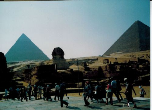 上到金字塔的最高层不仅仅要收费,还要登一个类似中国上房用的铁质梯子,也比较陡峭,由于比较狭窄,所以并不恐怖。墓里的文物都陈列在市内的博物馆里或者是“某一个国家”的陈列室,看,就是看的墓地(就是一座坟墓)。最著名的狮身人面像是在金字塔外,基本可以理解为一座立体的墓碑,只不过是一座死者的雕像。